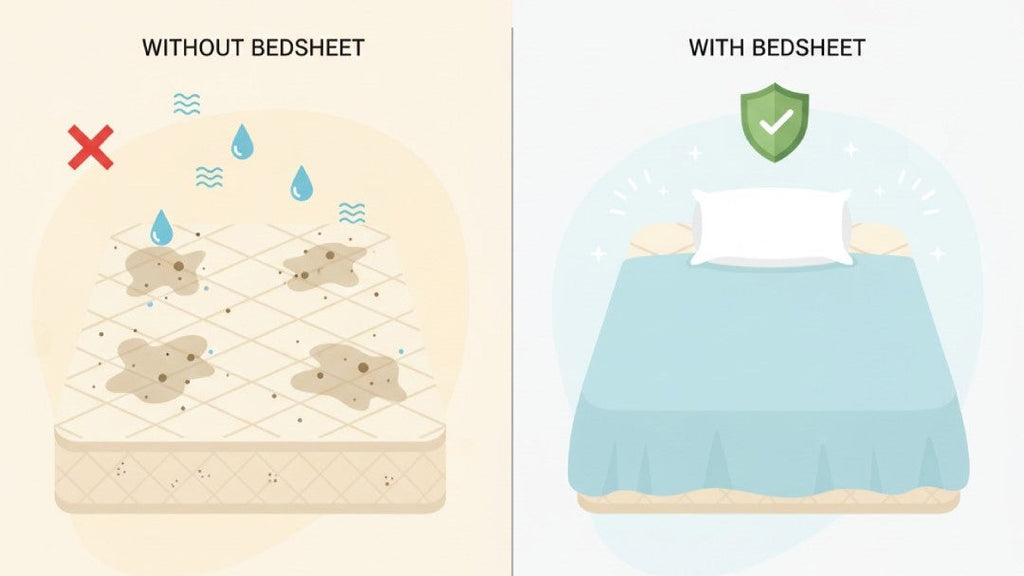 Saat tidur, tubuh mengeluarkan keringat dan sel kulit mati. Tanpa sprei, keringat, minyak tubuh, dan bakteri akan langsung menempel di permukaan kasur.