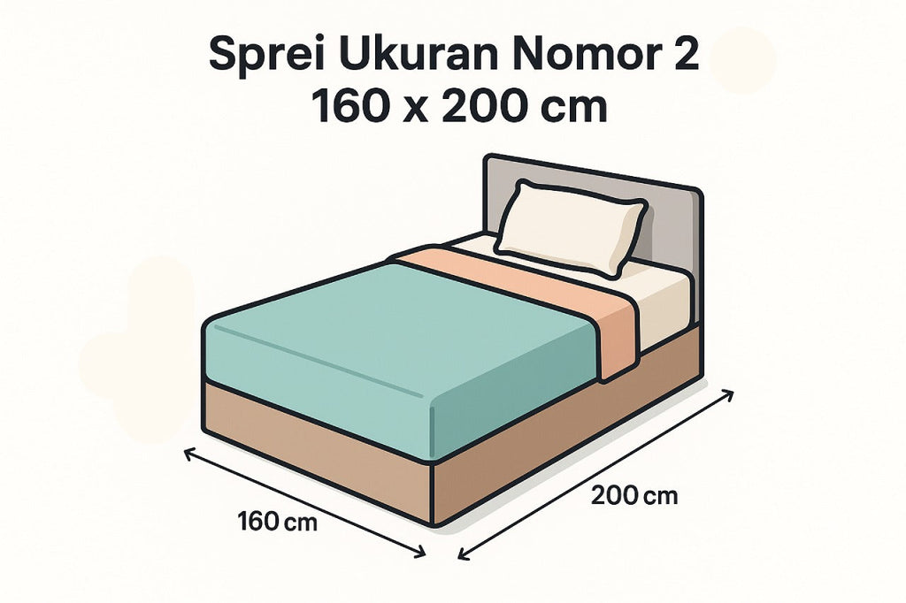 Lantas, sprei queen ukuran berapa? Jawabannya adalah sama dengan ukuran sprei no 2, yaitu 160x200 cm.